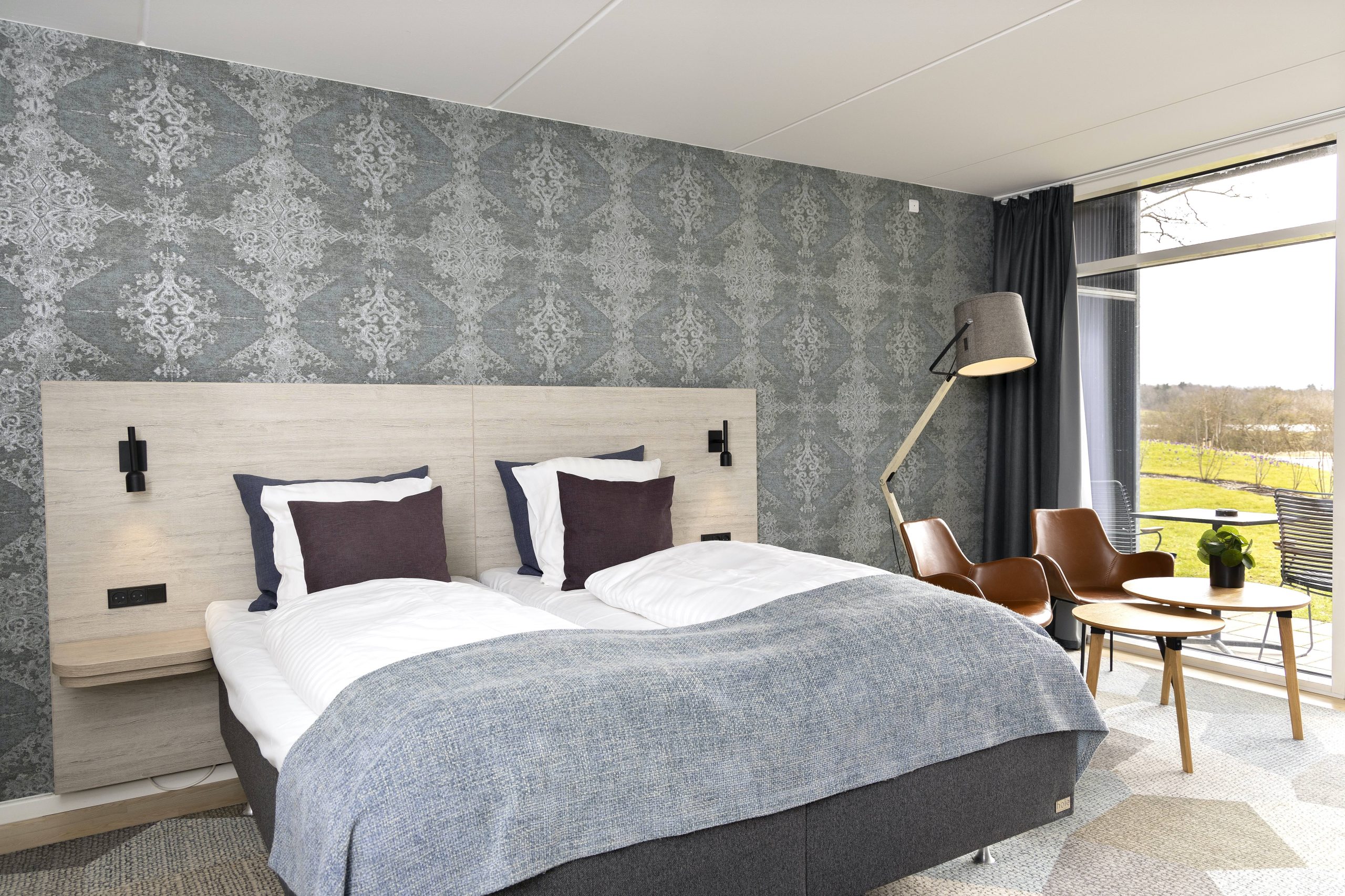 Vi trådte ind i HimmerLand og blev straks mødt af en imødekommende atmosfære og den friske duft af grønne arealer. Den rolige stemning, kombineret med det stilrene nordiske design og det store lysindfald, skabte med det samme en følelse af pusterum og eksklusivitet.
